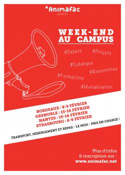 Chaque année, les associations étudiantes du réseau Animafac se rassemblent à l’occasion des Week-ends au campus pour deux jours d’échanges autour de l’engagement étudiant. Cette année, rendez-vous en février à Bordeaux, Grenoble, Nantes et Strasbourg !